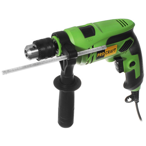 Ударний дриль Procraft PS-1000 - оснащена функцією реверсу, що полегшує діставання свердел з матеріалу у випадку їх застрягання. Обмежувач глибини сверління дозволяє сверлити відчини заданої глибини. За допомогою регулятора обертів можна налаштувати інструмент під конкретний матеріал. Надійний електричний двигун забезпечує продуктивну і безперебійну роботу. Рукоятка має упор в нижній частині для надійного захоплення дрилі під час роботи. Ударний механізм полегшує свердління бетону та цегли.