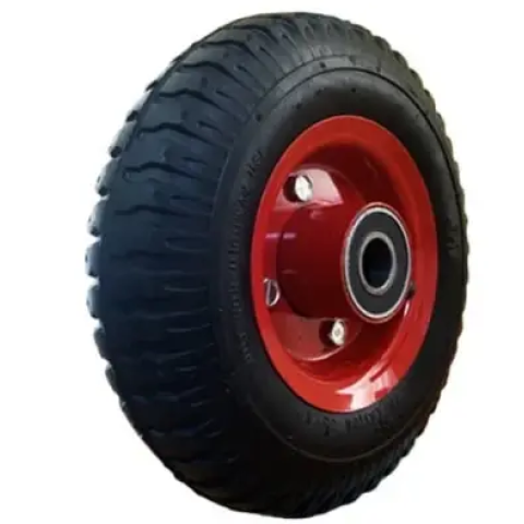 Колеса без кронштейна з кульковим підшипником - обід колеса пресований з листової сталі, оцинкований або пофарбований. Лита гумова шина чорного кольору раніше такий тип коліс називали "бандажними". У колесі встановлені якісні кулькові підшипники. Твердість 80 Shore A. Кронштейн: пресований з листової сталі, або звареної. Кронштейн оцинкований та хромований, дворядний шарикопідшипник у поворотному вузлі. Вісь колеса на болті.