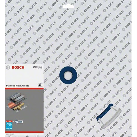 ОПИС Диск алмазний сегментований Bosch 355x25,4мм (2608900537): Термін служби алмазного круга Bosch при роботі з металом - в 100 разів довше. Сталевий корпус з алмазної ріжучої кромкою дуже надійний, а глибина і швидкість різання залишаються незмінними протягом всього терміну служби. Завдяки алмазної технології Bosch колах не розбивається при падінні, не виробляє зайвого пилу і запаху хімічних препаратів під час різання. Призначається для різання металів, в тому числі стали, чавуну, нержавіючої сталі та міді. Алмазні круги Bosch для різання металу відповідають найвищим вимогам безпеки, зокрема стандарту EN 13236 Призначений для відрізних дискових пилок Відрізняється підвищеним ступенем безпеки і чистотою різання.