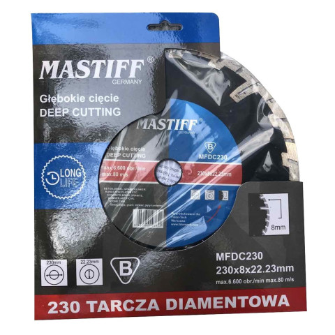 Відрізний алмазнний круг MASTIFF по бетону 230 мм (глибокий різ)