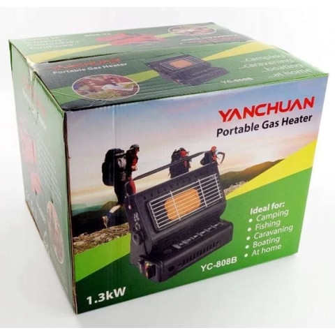 Портативний газовий пальник / газовий обігрівач / газова плита - YANCHUAN YC-808B Основна функція даного приладу – опалення житлових приміщень у капітальних та тимчасових будівлях, мисливських та дачних будиночків, наметів, наметів та автомобілів, а також приготування чи розігрів їжі. Обігрівач-плита обладнаний керамічним інфрачервоним газовим (ІЧ) пальником потужністю 1,3 кВт. Горілка не потребує налаштування та обслуговування. Поворотна конструкція обігрівача забезпечує спрямоване тепло. Для живлення пристрою використовуються газові цангові балони та передбачено адаптер (перехідник) для підключення побутового балона. Обігрівач має функцію-ХОЛОДНИЙ ПУСК. Обігрівач обладнаний стопором кута повороту, що дозволяє легко змінювати кут нахилу. Також в комплект входить підставка для посуду, що дуже зручно для приготування чи розігріву їжі. Ми рекомендуємо цей газовий інфрачервоний обігрівач-плиту як для використання в побуті, так і під час туристичних походів, на кемпінгу, полюванні, риболовлі тощо. Завдяки своїм якостям він стане для Вас гарною підмогою на весь сезон холодів.