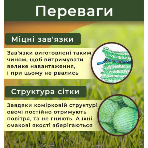 Сітка овочева поліпропіленова 45х75 см 30кг Зелена 40 штук